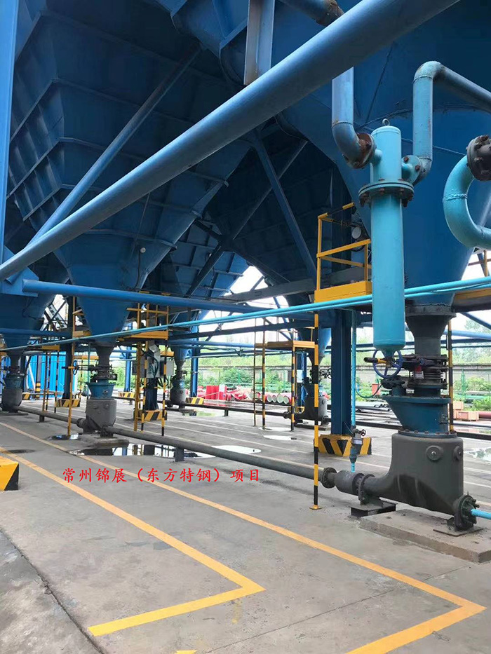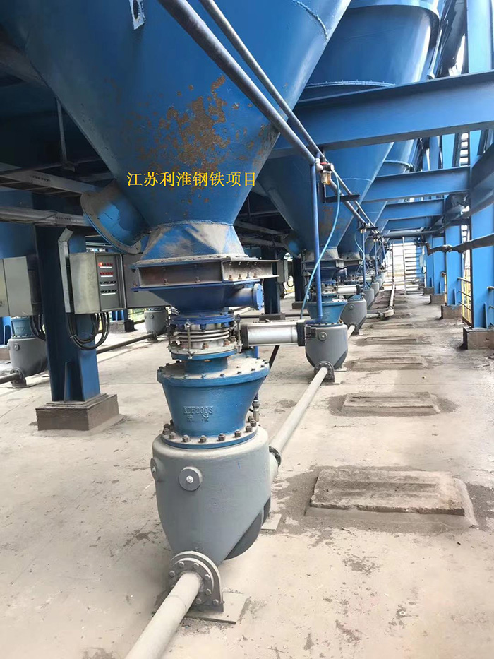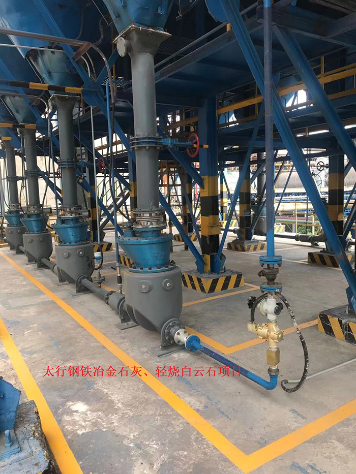 系統(tǒng)設(shè)計(jì)時(shí),在AV輸送泵上部進(jìn)料口處設(shè)置1只氣動進(jìn)料閥(旋轉(zhuǎn)閥),該進(jìn)料閥采用DN200氣動旋轉(zhuǎn)閥。該閥具有密封性能好、耐磨性強(qiáng)、耐高溫、開關(guān)無卡瑟現(xiàn)象、無卡灰或積灰現(xiàn)象、使用壽命長等特點(diǎn)。